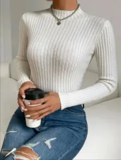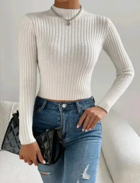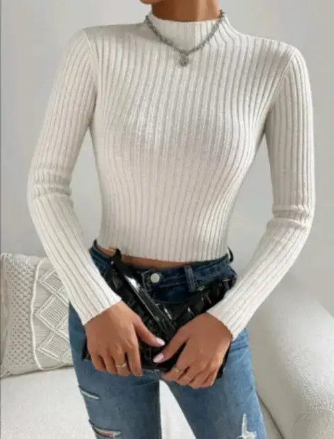 Jersey Blanco unicolor de punto, cuello alto 🤍Medidas 📏:Hombro : 34 cmLargo : 44cmLargo de la manga : 57 cmPecho : 72 cmEl tejido es grueso y la tela estira, muy calientito ✨NUEVO ✨SIN Defecto ✨ENVÍO INMEDIATO 🚚!✨