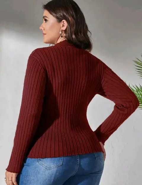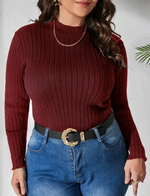 Jersey de cuello alto. Jersey de cuello alto, tejido de canal, manga larga, SHEIN CURVE, talla 0XL, nueva sin detalles. Medidas: hombro 39.5cm, largo 56.5cm, largo manga 51.8cm, pecho 74cm, puño 15.5cm, biceps 25.8cm, estira bastante.