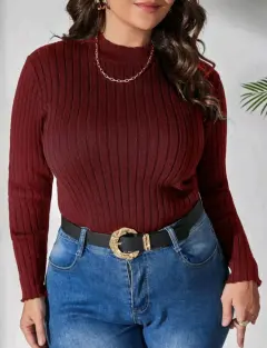 Jersey de cuello alto, tejido de canal, manga larga, SHEIN CURVE, talla 0XL, nueva sin detalles. Medidas: hombro 39.5cm, largo 56.5cm, largo manga 51.8cm, pecho 74cm, puño 15.5cm, biceps 25.8cm, estira bastante.