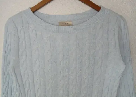 Jersey de punto de 8 de algodón, color azul claro, medidas de axila a axila 41 cm, sin detalles