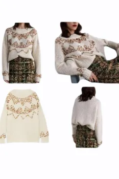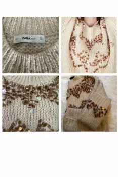 Jersey De punto Zara. Precioso, suave y acogedor Jersey Mohair color beige, cuello Perkins y aplicaciones de lentejuelas grandes brillantes 🌟🏷️Talla S (26) 🌟Marca: Zara 🌟🧵✂️Composición: 50% Acrílico, 17% Lana, 12% Poliéster, 12% Mohair, 9% Nylon... 🎀Está super bello!!🎀