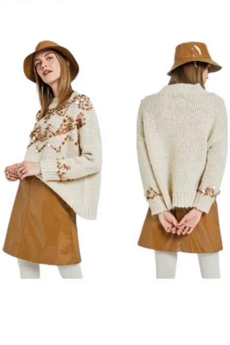 Precioso, suave y acogedor Jersey Mohair color beige, cuello Perkins y aplicaciones de lentejuelas grandes brillantes 🌟🏷️Talla S (26) 🌟Marca: Zara 🌟🧵✂️Composición: 50% Acrílico, 17% Lana, 12% Poliéster, 12% Mohair, 9% Nylon... 🎀Está super bello!!🎀