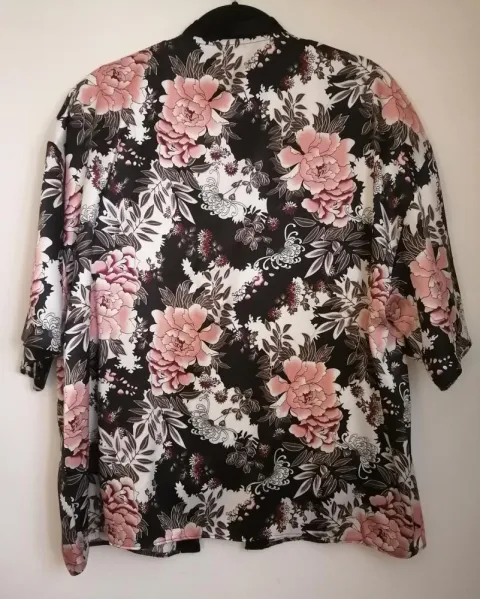 Blusón tipo kimono estampado floral, talla G/L 95%poliéster, 5% elastano, nuevo sin etiqueta, sin ningún uso.