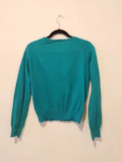 Lindo Suéter Azul Claro, muy combinable y cómodo, abierto de frente y con botonadura. Viene talla grande pero esta un poco reducido.