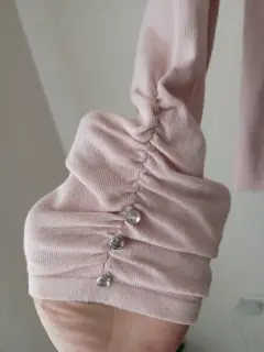 Suéter rosa, súper ligero y calientito, rosas formadas con tela y botones con piedras