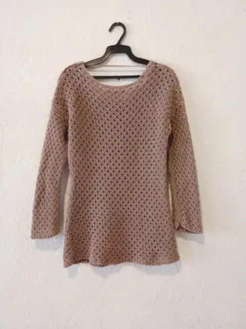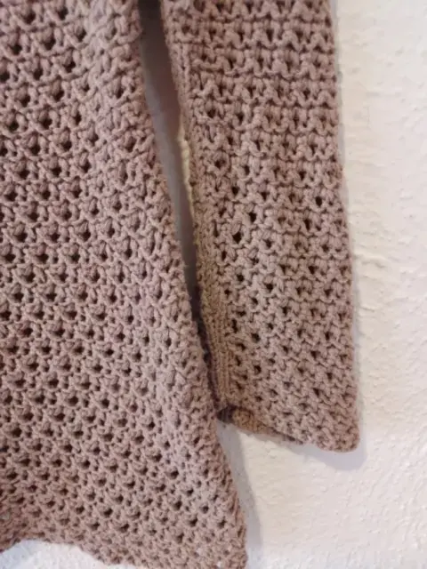Hermoso Suéter Crochet tipo, café claro, talla Mediana, ajustable, linda figura, no tiene ningún defecto.Medidas sin estirar y de frente: hombro a hombro 42 cm, cintura 33 cm, altura 67 cm.