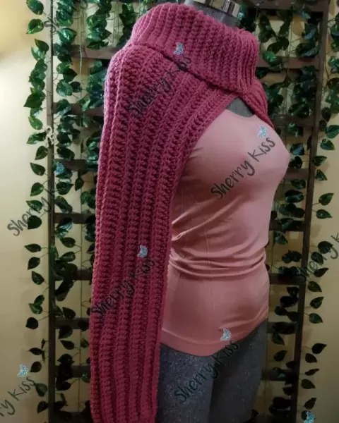 Mangas con cuello de estambre tejido a mano. Mangas con cuello incluido (tipo cuello de tortuga) tejido a mano con estambre calientito.Color: Rosa medio.Altura del cuello: 21 cms aprox (Sin doblar).Doblado mide aprox 10 cms.Gracias por tu tiempo!