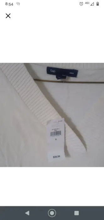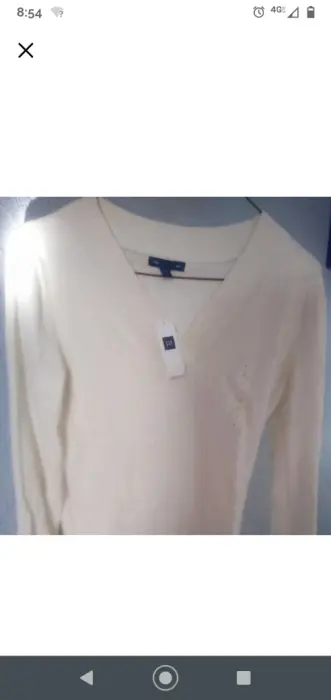 Nuevo con etiquetasSuéter original GAP* Talla S -M (estira bastante).* Color crema/beige/blanco/hueso/crudo/no sé cómo se llama este color (O sea, blanco blanco como hoja de papel o algodón, no es).* Escote en V.* Me lo trajeron del outlet de las Vegas de regalo, pero sinceramente no me gustan los tonos claros que no puedo describir 😅.Lo vendo al precio de la etiqueta con taxes