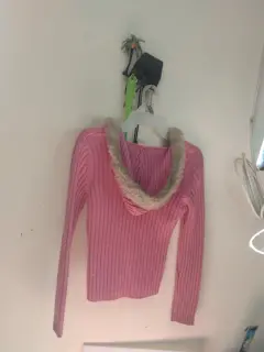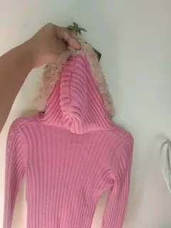 Rosa gorro. Lindo suéter rosa,queda a una chica de 14 a 16 años ,está excelente ,es corto muy cómodo trai su gorrito para estos días fresco👌☺️