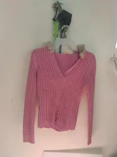 Lindo suéter rosa,queda a una chica de 14 a 16 años ,está excelente ,es corto muy cómodo trai su gorrito para estos días fresco👌☺️