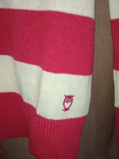 Suéter. Suéter rayado rojo con blanco cuello en v manga larga un estilo muy casual