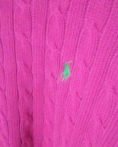 Suéter de cuello redondo, en color rosa con logo en color verde limón. Talla S excelentes condiciones.