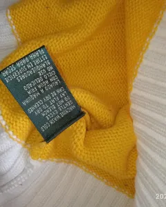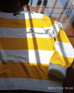 Sueter de punto a rayas colores amarillo y blanco, cuello cuadrado, talla L, con escudo de marca bordado, padrísimo e impecable, original, nuevo a estrenar con etiquetas. Te va a encantar. Queda a talla 36mx suelto, queda desde M tipo over size.Medidas:Axila a axila 55cmHombro a hombro 43cmCintura 54cmCadera 49cmMangas 67 cmLargo 64 cm