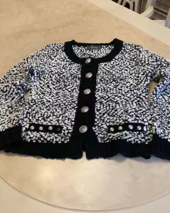 Suéter abierto T/ Unica. Hermoso suéter blanco y negro, aunque dice unitalla, bien queda a una talla mediana, medidas: de axila a axila 46 cm, largo 56 cm,