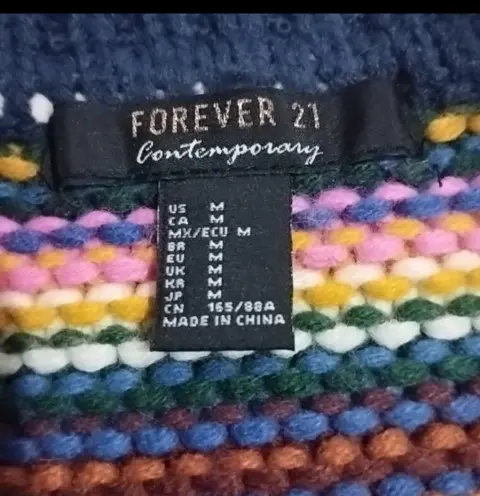 Suéter tejido de varios coloresEs corte cuadrado, amplio, talla MMarca FOREVER21