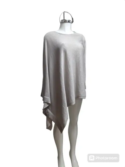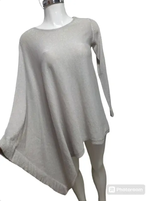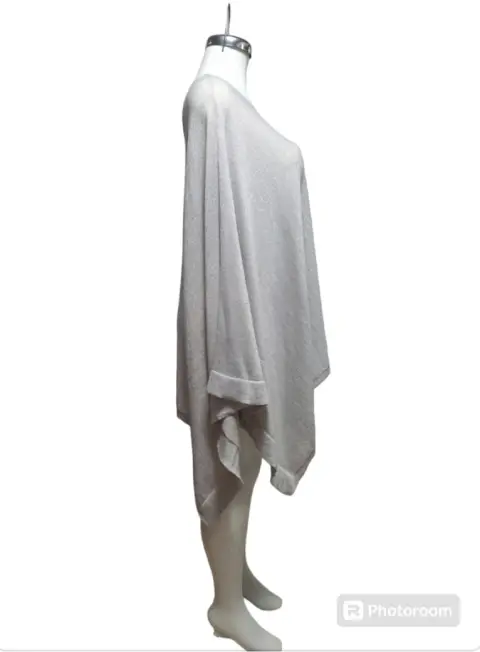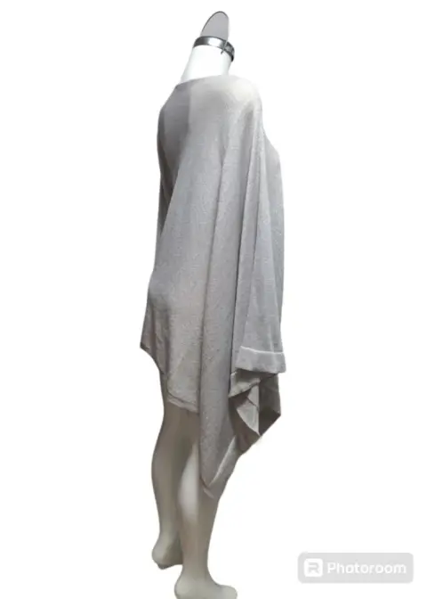 Sueter Asimétrico Gris Perla. Sueter Asimétrico Gris Perla, la tela tiene acabado brilloso, suave y ligera, tiene una manga compñeta y del otro lado el espacio para meter la otra mano, es talla S pero tambien queda a M, tiene 3 hilos jalados detalle en la ultima foto, puesto no se ven