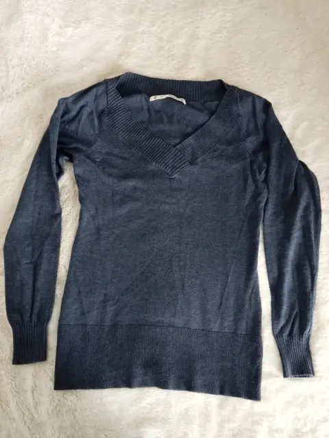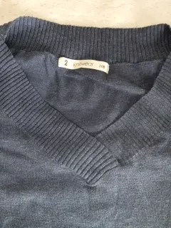 Suéter azul morado Lob. Suéter en cuello V, color morado azul. Talla 2 (M) marca Lob, resorte en puños y cintura.