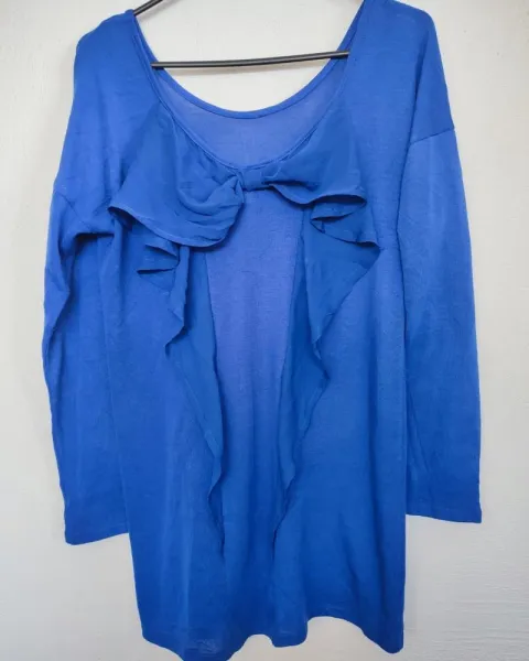 Hermoso suéter color azul rey, la etiqueta dice MATERNITY, pero si te gusta vestir cómoda y nada apretado te quedará genial! Además tiene un hermoso moño en la espalda y le da un toque genial