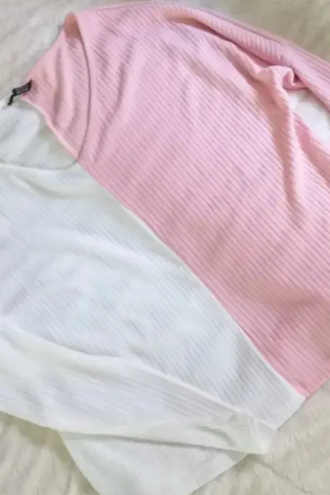 SUETER BITONO M-L SHEIN. Suéter ligero, bitono, blanco-rosa, es M pero también queda a L ya que viene amplia, la tela es delgada, puesta solo 1 vez.Medidas:De axila a axila 60cmDe largo 63cm