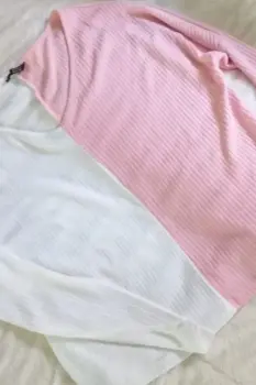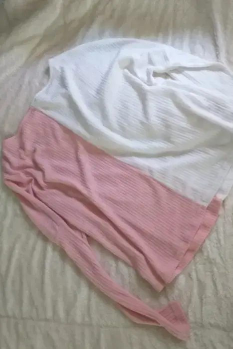 Suéter ligero, bitono, blanco-rosa, es M pero también queda a L ya que viene amplia, la tela es delgada, puesta solo 1 vez.Medidas:De axila a axila 60cmDe largo 63cm