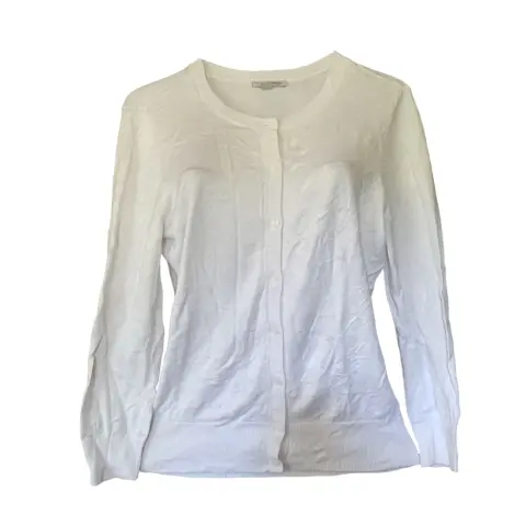 Sueter blanco para mujer. 82% viscosa, 18% nylon* Un artículo esencial para todo el año, este cárdigan clásico romántico cuenta con un cuello redondo y ocho botones frontales perfecto para usarlo en la oficina con falda* Los detalles acanalados en las mangas y en la parte de abajo realzan tu look convirtiéndolo en un Siempre BásicoMedidas: Hombros: 31 cm, Busto: 36 cm, Cintura: 33 cm, Altura: 48 cm