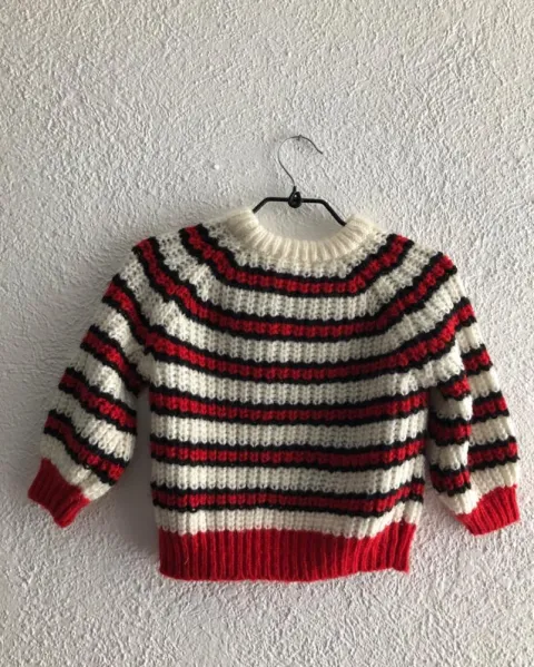 Suéter blanco, rojo y negro
