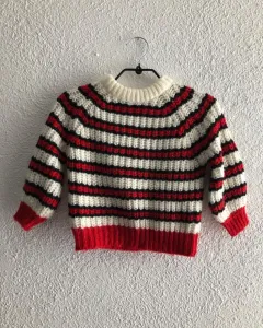Suéter blanco, rojo y negro. Suéter blanco, rojo y negro, Zara Fancy Collection, 100% acrílico, talla 5 años, manga 42 cm, axila a axila 38 cm