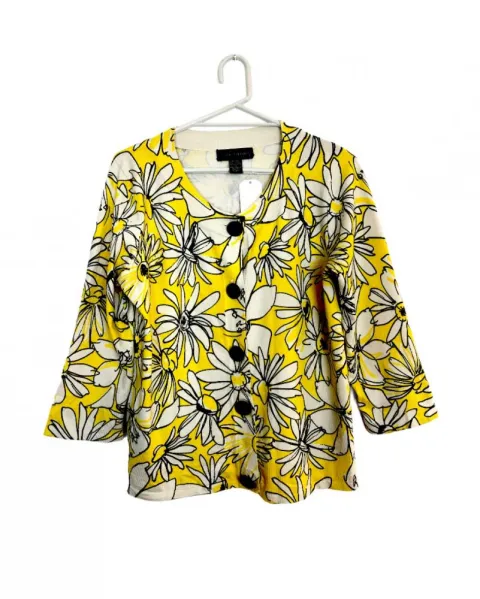 Suéter floreado en amarillo y blanco de Cable & Gauge, manga 3/4 nuevecito te lo envío hasta tu casa.
