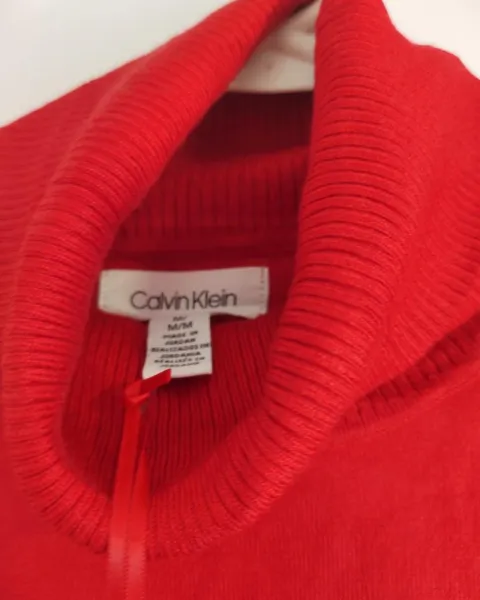 Suéter Calvin Klein. Suéter nuevo Calvin Klein, negro con rojo talla m. La modelo pesa 66kg y mide 1.61 está súper hermoso!!!