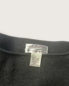 Sueter tejido en color gris con detalles en color negro. Es talla grande, es un poco floja pata talla mediana(como la foto), es de MAX STUDIO SPECIALTY PRODUCTS (Marca americana).Es de uso pero se encuentra en excelentes condiciones, como nuevo.Esta muy bien lavado y desinfectado.Medidas de axila-axila 55.5cmLargo 49.5cm.