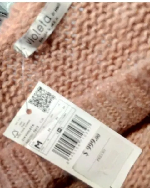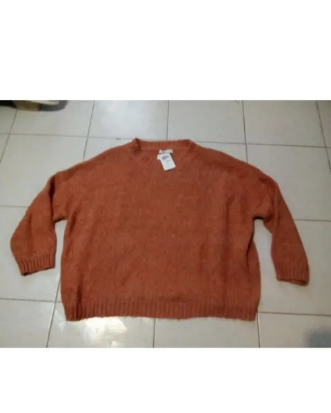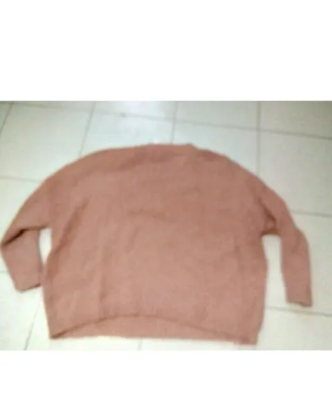 Es un suéter tejido color melón, es muy calientito, muy cómodo, para nada estorboso.Totalmente nuevo y sin ningún detalle