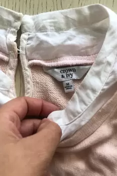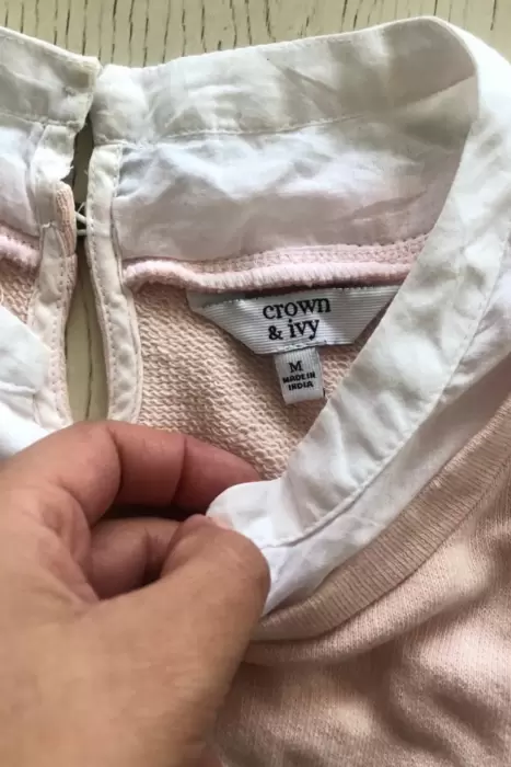 Sueter con blusa rosa, viene con simulacion de camisa debajo, la tela es delgada y ligera, la tela de camisa abajo se ve oscura en la foto pero esta en tono rosa.Talla m, como la simulacion de camisa solo es abajo estira.Medidas:Hombro a hombro: 41 cmAxila a axila: 54 cmLargo: 75 cm