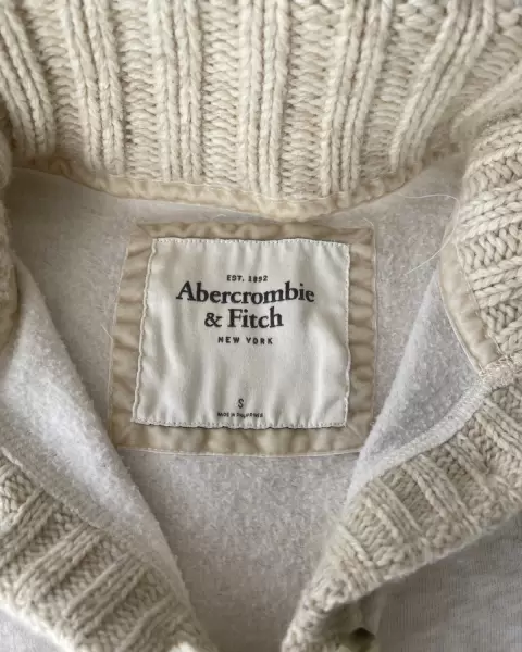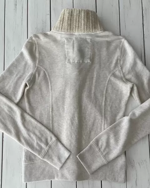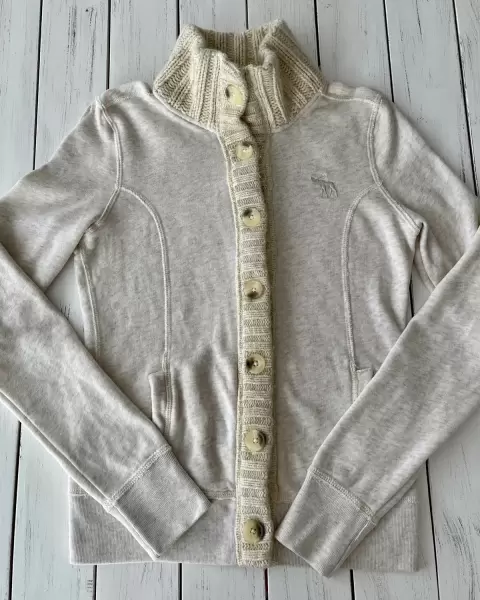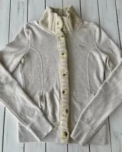 Suéter con cuello Abercrombie & Fitch. Suéter tela de sudadera con botones, cuello y dos bolsillos al frente.Talla: SMedidas: 44 cm de axila, 37 cm de hombros, 56 cm de largo.Sin detalles