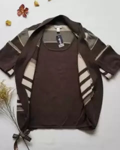 Sueter con manga 3/4. Bonito sueter abierto con blusa integrada color café capuchino su manga es 3/4Es talla PL que es Petite L, si eres entre talla M /G te va a quedar muy bienHombro 35cmSisa 21cmBusto 47cmLargo total 56cm
