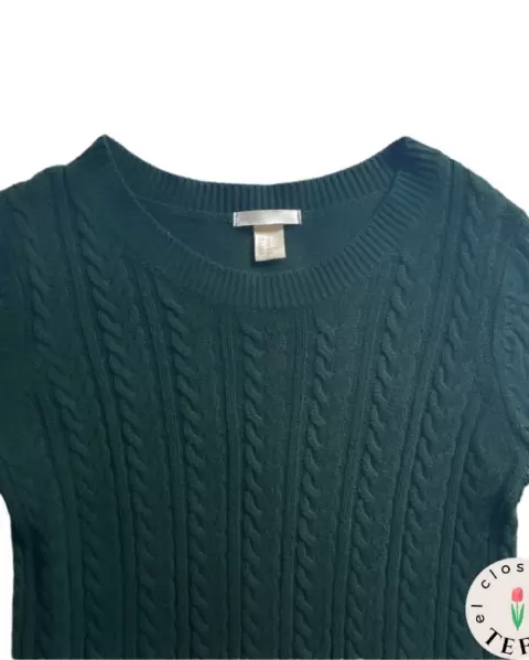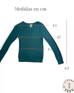 Suéter con relieve verde oscuro. * Colección invierno 2021* Queda a talla XS y S* Color verde oscuro* Calientito y cómodo * Manga larga* Tiene un hoyito de 5 milímetros en el área del brazo derecho (foto 5)* Con mucha vida útil, muy combinable y versátil * Medidas sin estirar: hombro 43, pecho 45, manga 64, largo 62