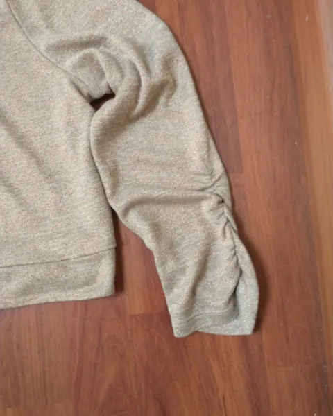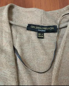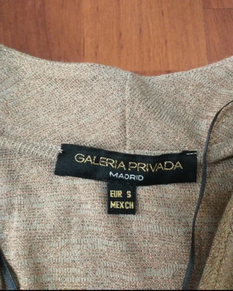 Sueter corto, color beige con hilos dorados,talla S, también da a M, un par de puestas, en buen estado.
