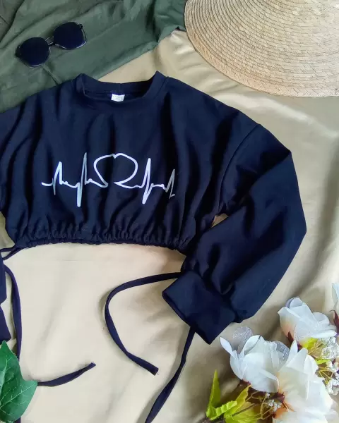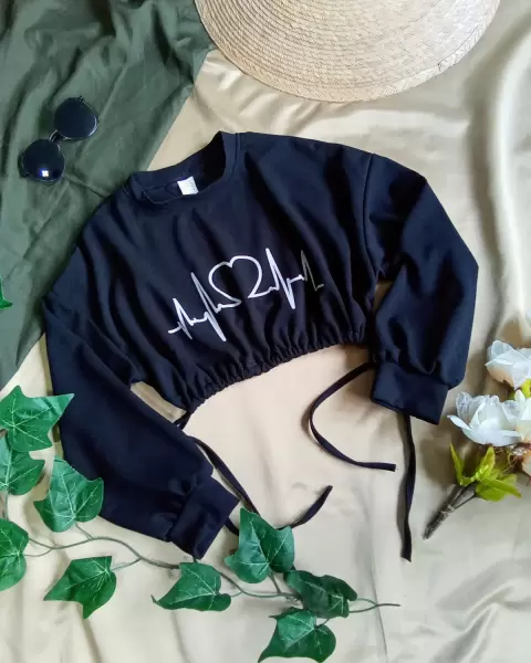 Suéter corto color negro. 🤩Precio a tratar si la compra es inmediata😊 o si te interesan mas prendas, se envian juntos para ahorrarnos los envios 🤗🖤Suéter corto muy cute🖤Color negro con estampado✨Talla CH, tambien puede queda a MMe gustan los cordones que tiene para ajustarlo a la medida que prefieras😎 Luce con faldas o pantalones