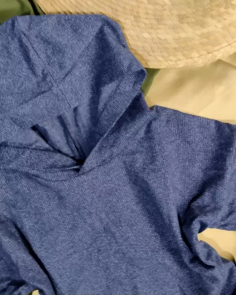 Suéter corto con capucha color azul. ❤Precio a tratar si la. Compra es inmediata o si te interesan otras prendas✨Se envía todo en un mismo paquete para ahorrarnos los envios :3Sueter corto y holgado con capucha color azul👀Talla CH pero tambien queda a M👉De uso en perfecto estado sin ningun detalle🪡MEDIDAS de costura a costuraDe axila 53 cmDe largo 40 cm
