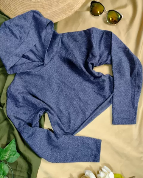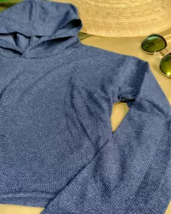 Suéter corto con capucha color azul