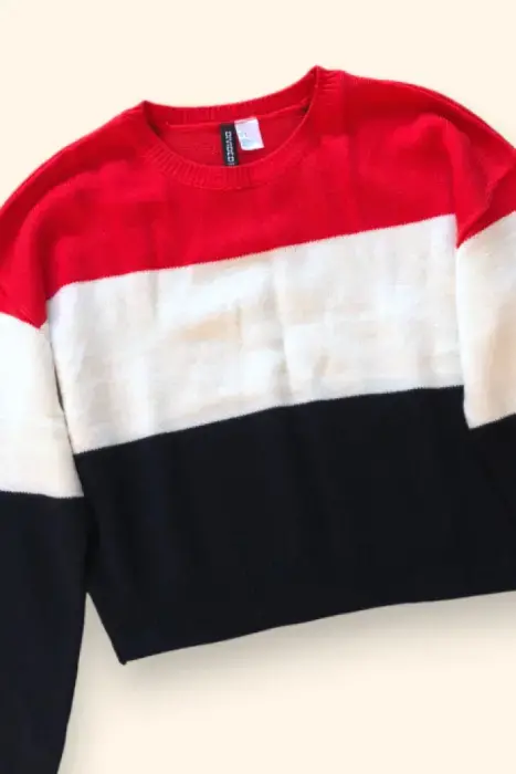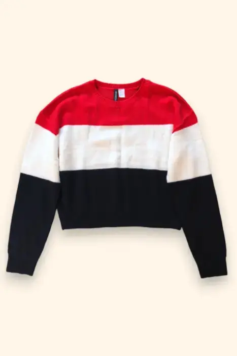Suéter Corto en franjas de color roja, blanca y azul marino, súper lindo para un look muy parisino!!! yo lo combinaría con jeans o pantalones casuales.👉Obtén 10% de descuento con mi código: Pinky