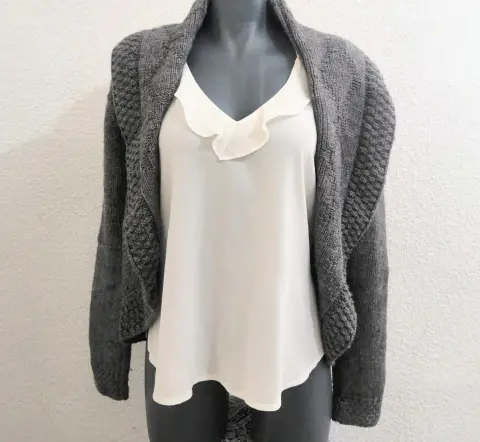 Suéter corto gris claro 🩶. ▪️Cuello amplio. Tejido. Abrigador, excelente para épocas de frío ▪️Talla S (6-8), da a S-M talla 3-5 aproximadamente