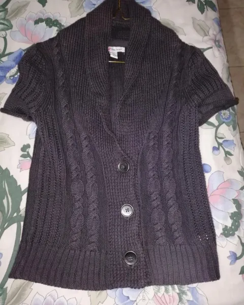 Suéter corto manga corta de punto!!!. Suéter de punto, manga corta, de botones, cuello alto de atrás!!! Muy bonito