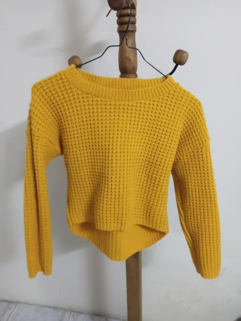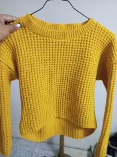 Suéter corto tejido, color mostaza corto grueso y súper calientito, casual, en perfectas condiciones.