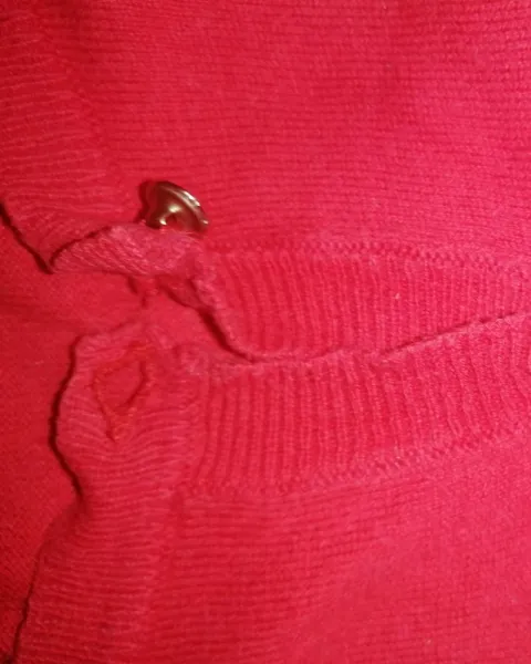 Sueter corto Zara. Sueter corto, a la altura de la cintura en color rojo, talla 26 o ch marca Zara. Tiene sus botones originales más uno extra. Color un poco desgastado u botón superior flojo.