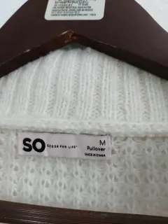 Suéter crema super calientito. Está super belloNuevo sin etiqueta!Talla M y queda sin problema a S.Color crema/beigeNo queda tan largo pero tampoco tan corto, checa la foto en el maniquí.Sin detalles!