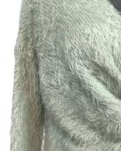 Lindo suéter en tela tipo angora con deshilado en color verde menta, fruncido al centro, súper fashion y a precio especial.