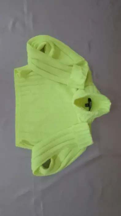 Suéter corto, tejido, manga con doble puño, color verde neon, llega a la cintura.
