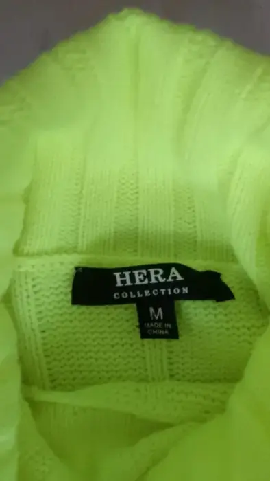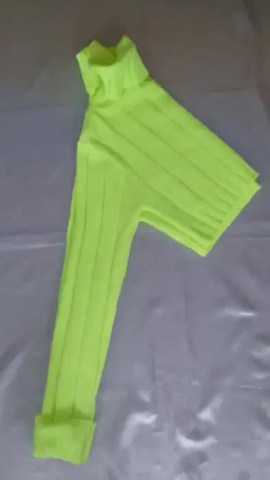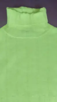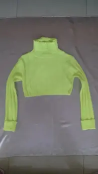 Suéter cuello de tortuga. Suéter corto, tejido, manga con doble puño, color verde neon, llega a la cintura.