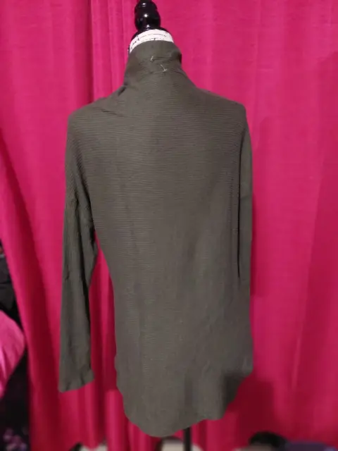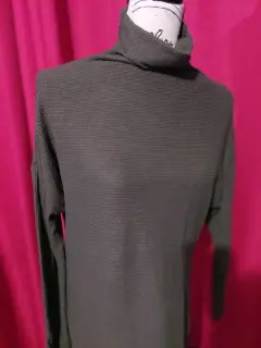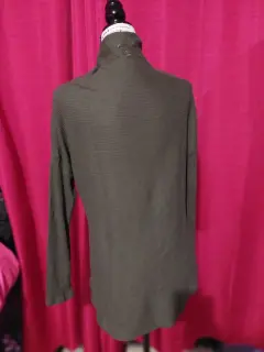 Sueter cuello largo talla M, medida de axila a axila 102 cm en circuferencia, es color verde militar, sólo se uso una vez, para ser probado, ha estado guardado, sin detalle, tiene una terminación circular.