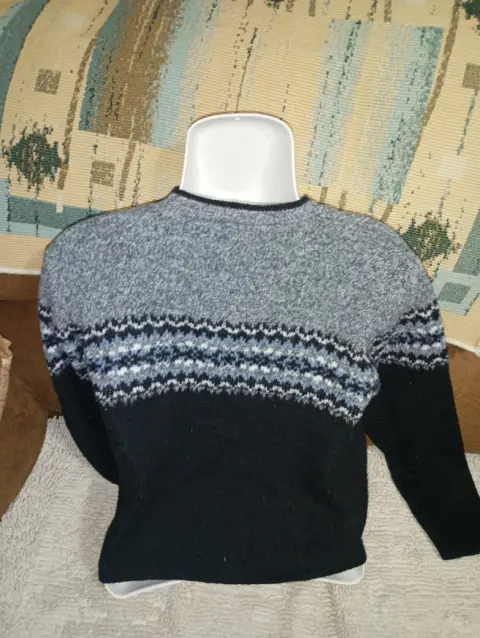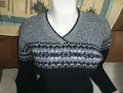 Bonito suéter cuello V de punto, bastante calientito, con detalles tejidos en diferentes colores al centro, queda como tipo crop-top, manga larga , muy lindo para un outfit de otoño ❤️ marcado como talla M pero igual llega a talla L